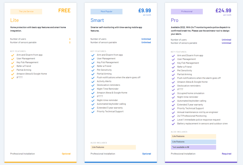 Most people will want the Smart plan, which is £9.99 and has unlimited sensors plus: