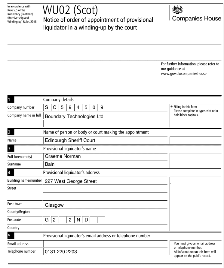 A quick update on the 11/01/23, Boundary Technologies has had a new companies house filing confirming that there has been an appointment of a provisional liquidator in a winding-up by the court.