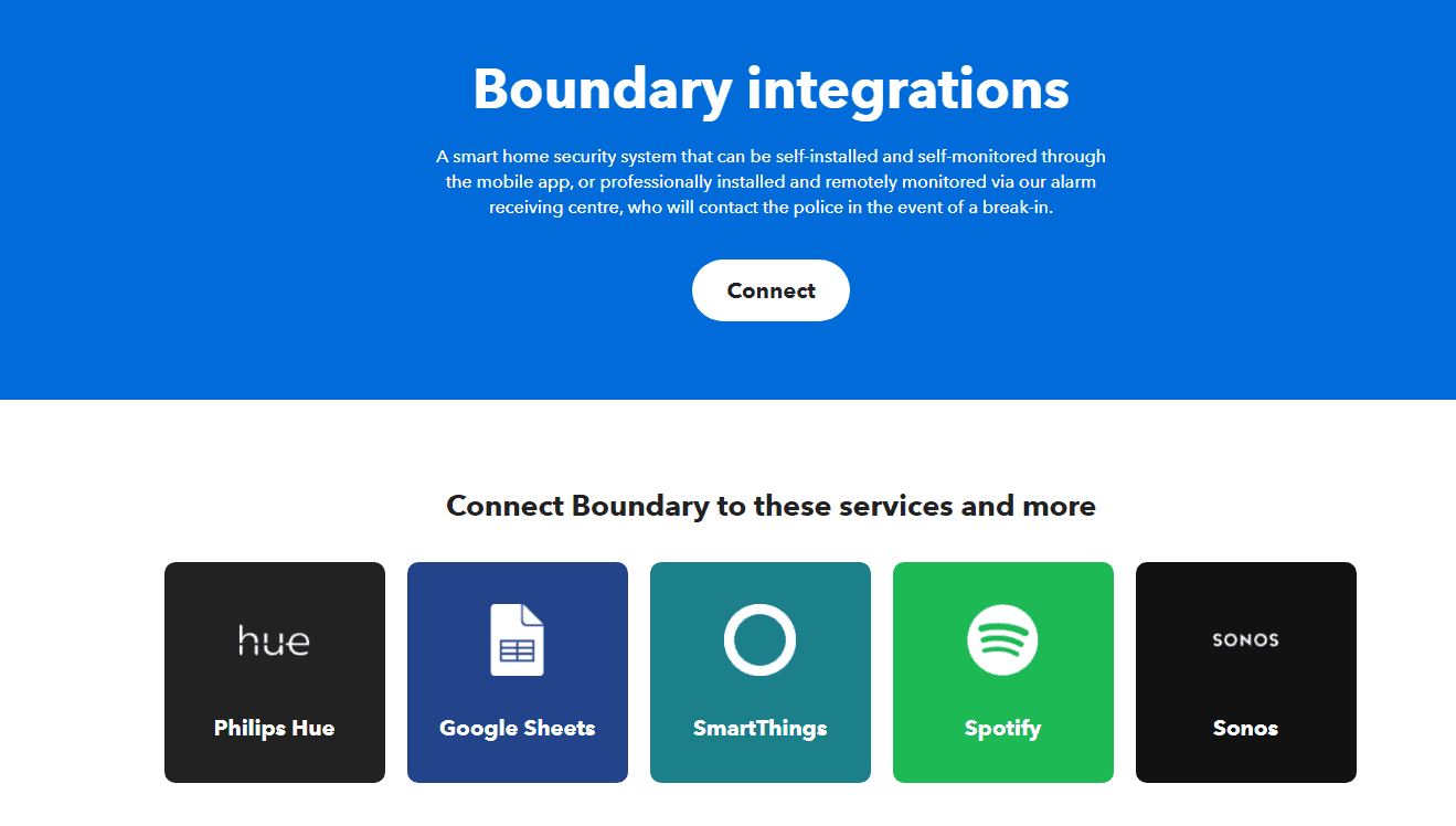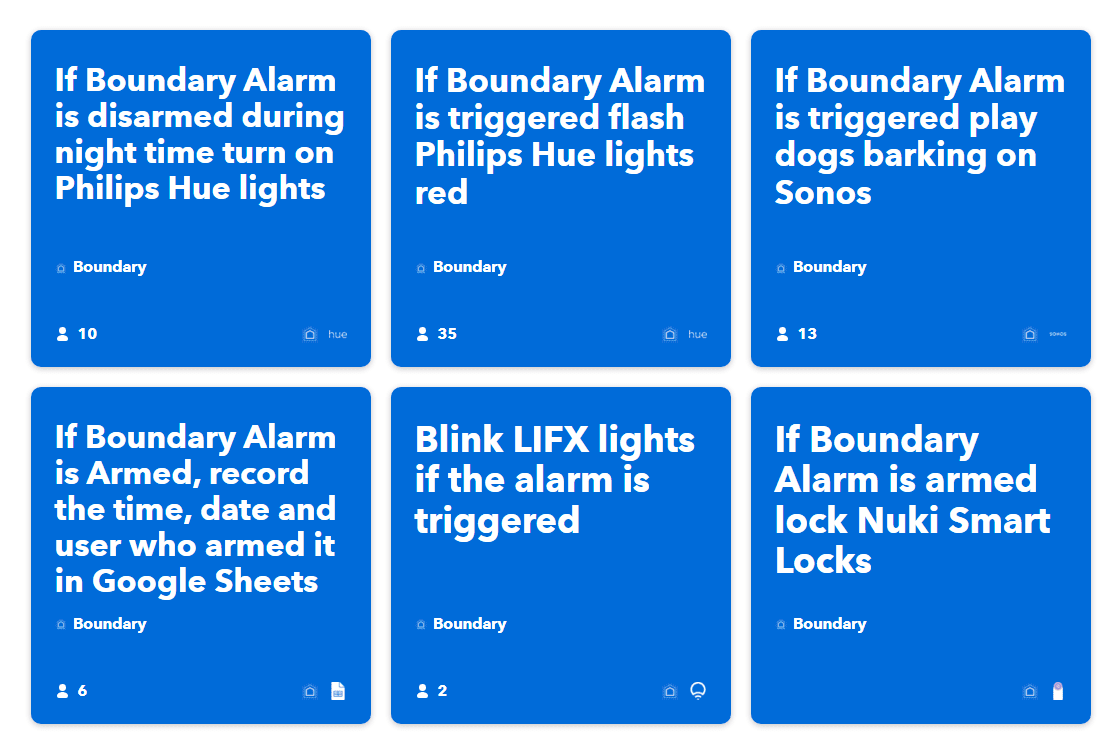 Boundary has a useful set of premade applets for their system, which work with Philips Hue, Google Sheets, SmartThings, Sonos and Spotify.