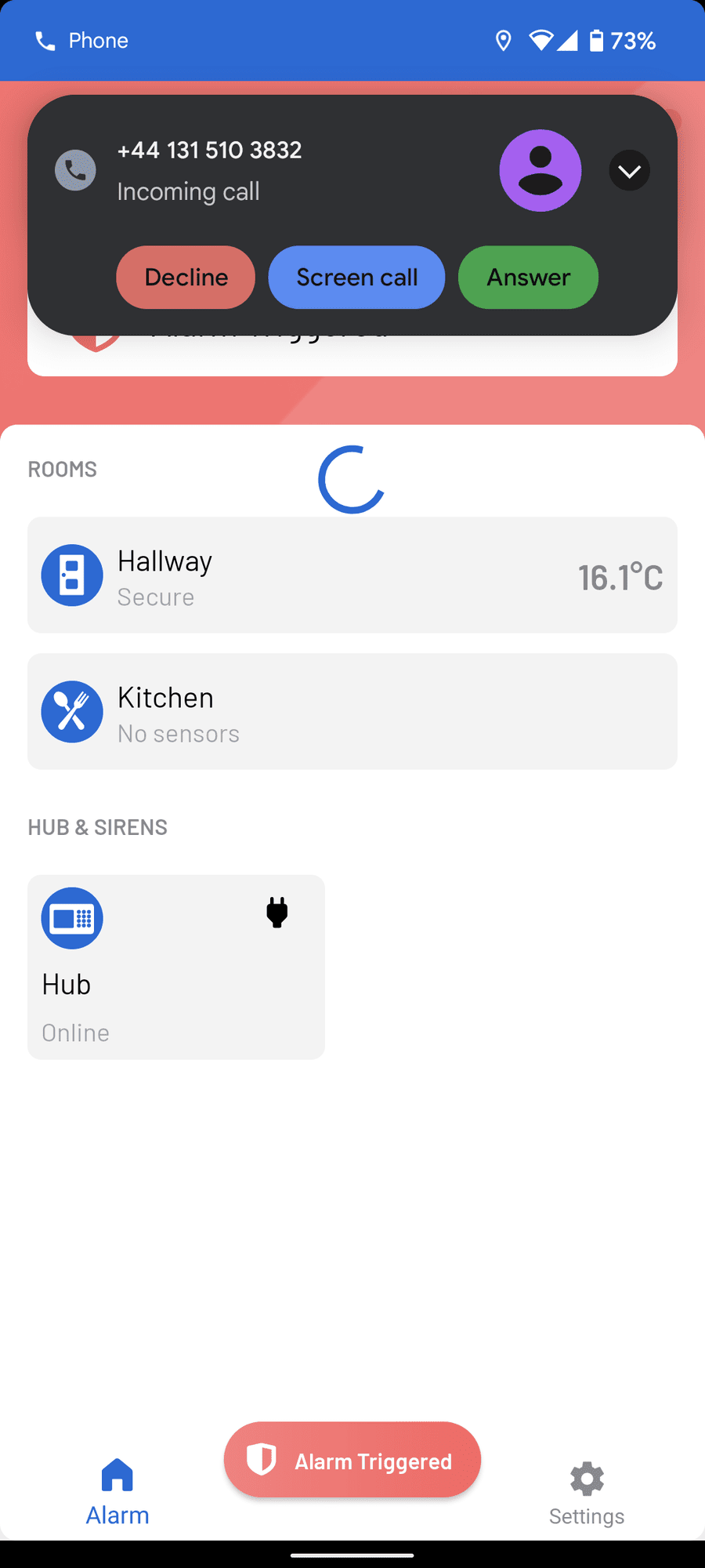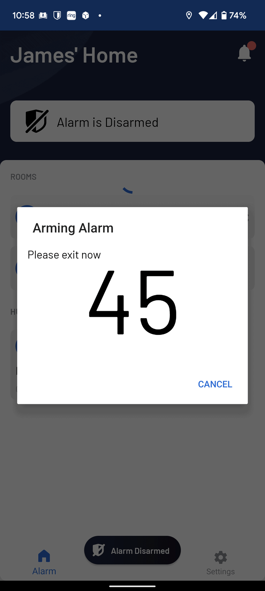 If you don’t unarm it, the siren will sound, your phone will get a push notification, and you will get a phone call. The phone call is an automated system that informs you to check the app.