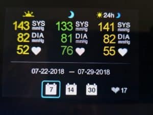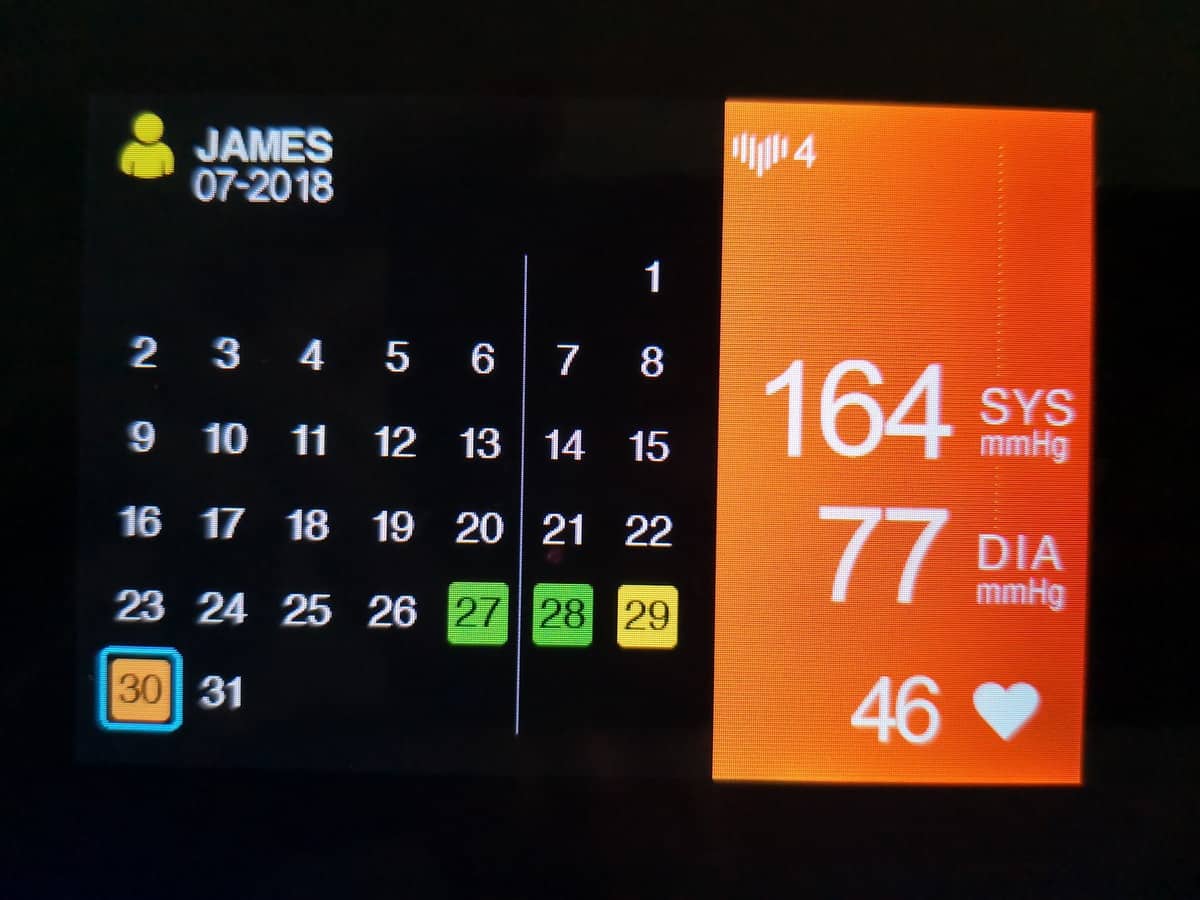 There are some caveats here though, the fit of the cuff and your seating position appear to be very important, much more so than other devices I have used. Sat back on my office chair with my arm quite low on the armrest gave extraordinarily high systolic readings while my diastolic and heart rate were measured fine. As you can see below, I had some mixed results to start. My final results are still higher than I would like, but they are healthy, and my last vice is that I am a huge caffeine addict so that probably doesn’t help.