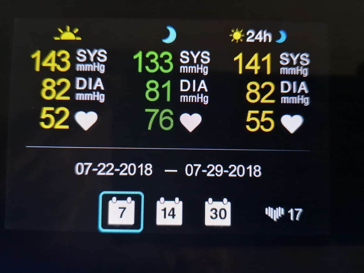 The last option is an overview which gives an average for either 7, 14, or 30 days with 3 averages one for the morning, nights and 24 hours.