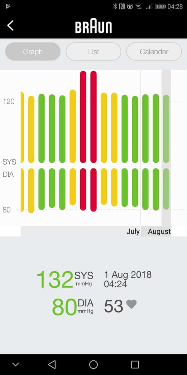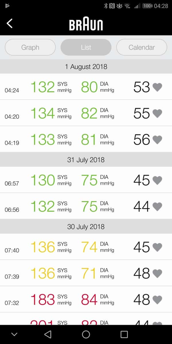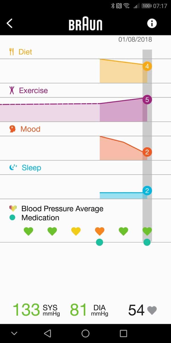 The other big feature of the device is being able to sync with your mobile to the Braun Healthy Heart App. The Android app has some terrible reviews a lot of them stating connection issues. However I suffered no such problem, and it connected immediately to my Mate 10 Pro running Android 8.