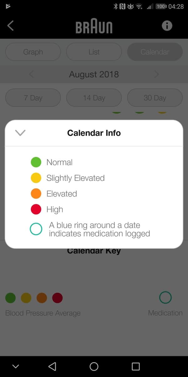 There is then a calendar option allowing you to go back to specific dates, if you take multiple readings on one day it will average them out, as with everything these are all colour coded so you can see good and bad days.