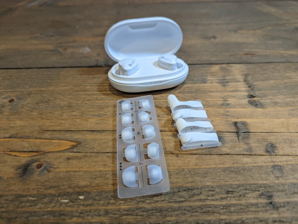 The 9-hour battery life requires you to switch the earbuds into low power mode, which I doubt many people will do. With the default mode, you get 7 hours + an additional 33 hours in the charging case. This is still excellent and well more than I’d ever need from one session.