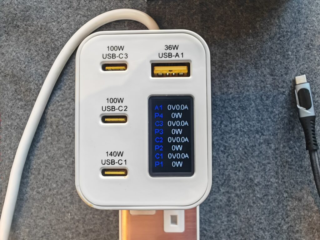 - 4 ports used simultaneously: 140W + 65W + 12W + 12W