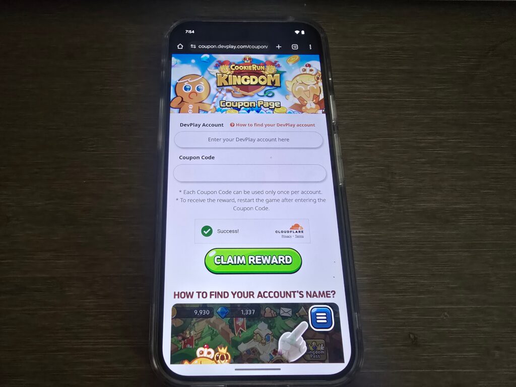 - Visit the official code redemption page at https://game.devplay.com/coupon/ck/en.