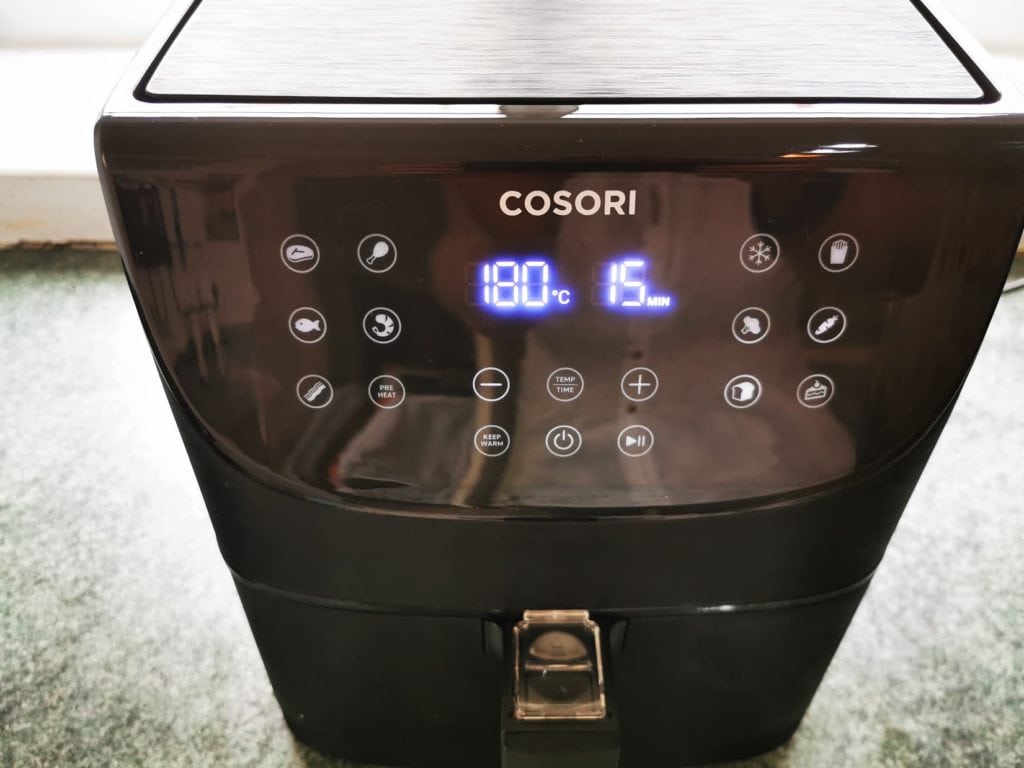The Cosori can be used for much more than just making chips (even if that’s what I mainly use it for). It has pre-sets for steak, chicken, seafood, shrimp, bacon, frozen foods, veg, root veg, desserts, bread and then of course chips.