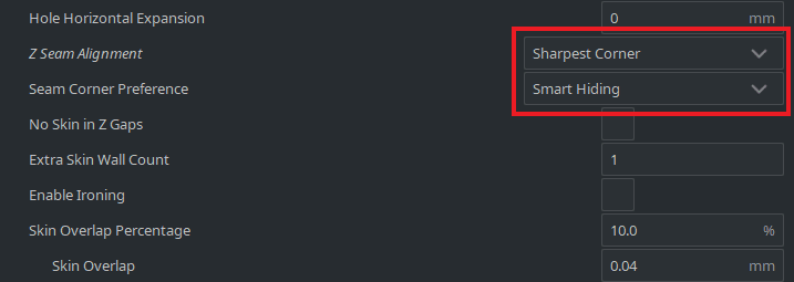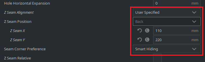 Creality suggests using the ‘Sharpest Corner’ option for non-cylindrical prints and the ‘User Specified’ options otherwise.