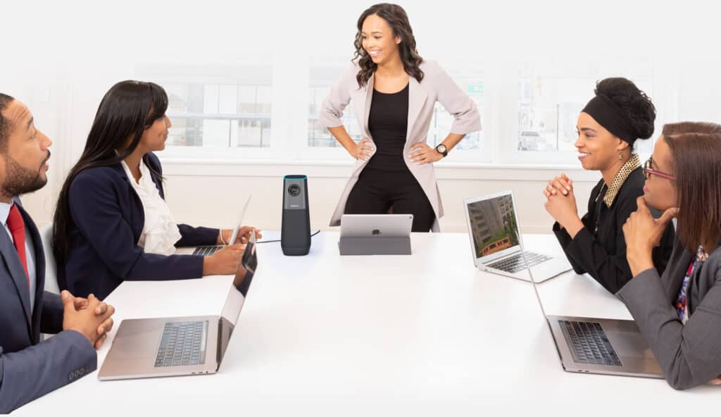 At the heart of the webcam is a high-end Sony STARVIS CMOS sensor that enables crisp, detailed 4K UHD video at 30fps. The 4K visuals reveal fine details and textures, making it easier to view content like documents, prototypes, or artwork in meetings. Complementing the 4K resolution is an extra-wide 115° field of view, which is able to comfortably fit multiple people or capture a full whiteboard without panning the camera.
