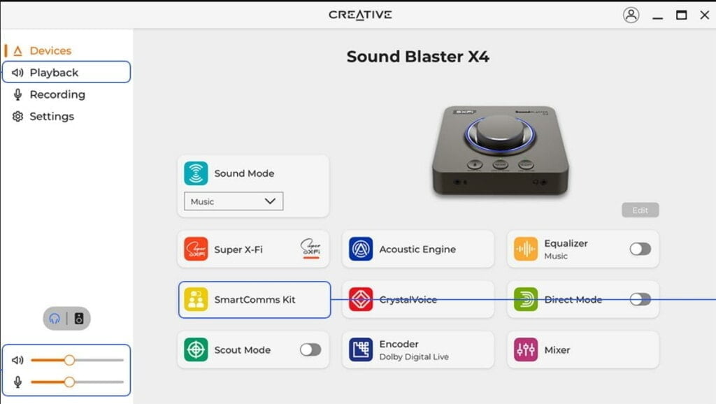 For Windows users, the Sound Blaster X4 also features Dolby Digital Live for convenient encoding of any audio sources to multi-channel surround sound in real-time.