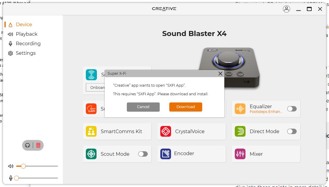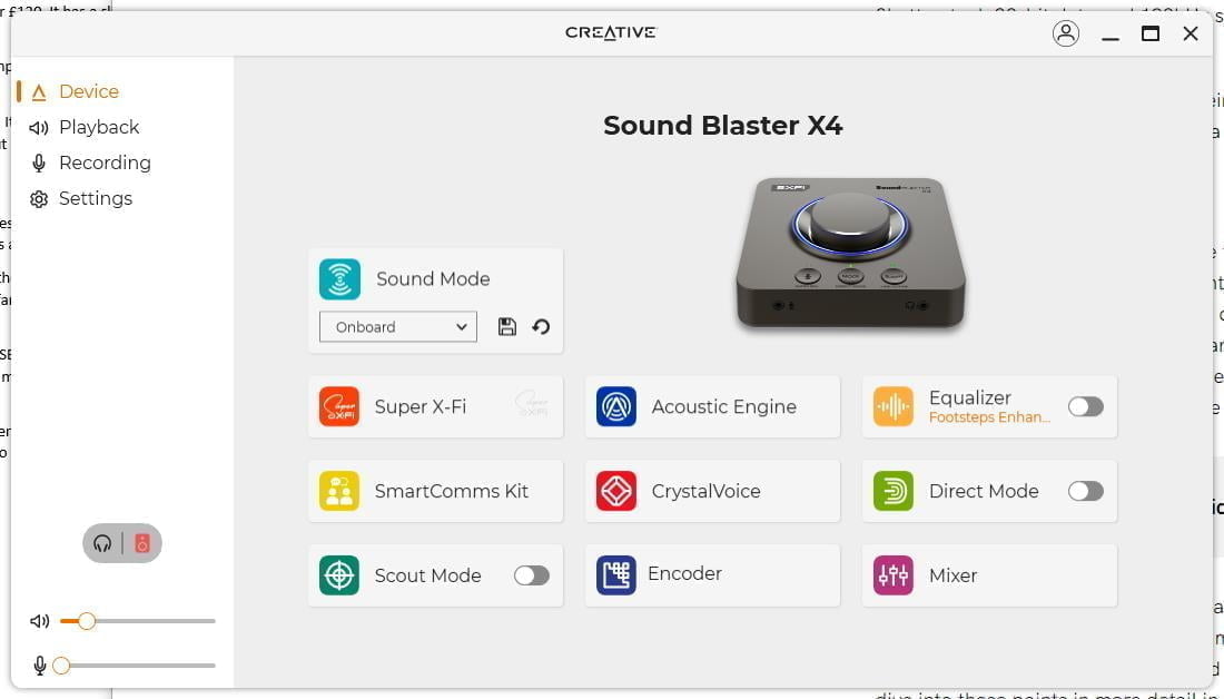 The Creative Sound Blaster X4 uses the Creative App rather than the Creative’s Sound Blaster Command of the X3. This seems to be their main app moving forward, and all my recent reviews have used it.