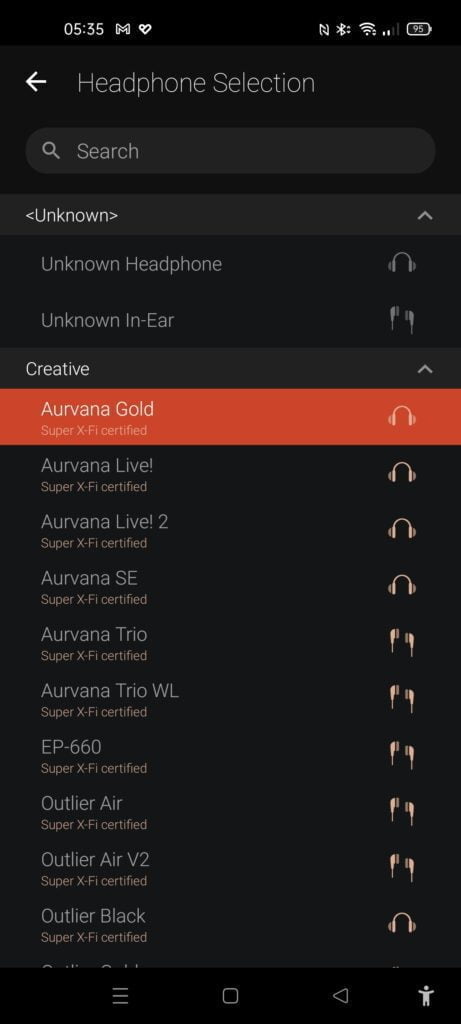 Ideally, you want a Super X-Fi certified pair of headphones to make the most of the sound processing, but there is quite a large range of compatible headphone profiles within the app.