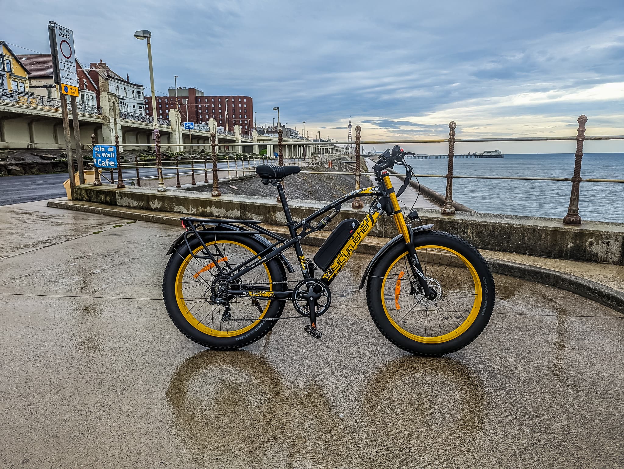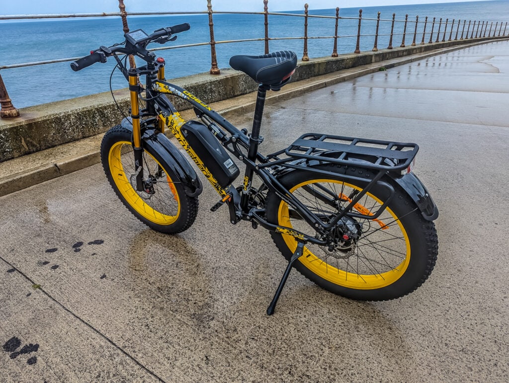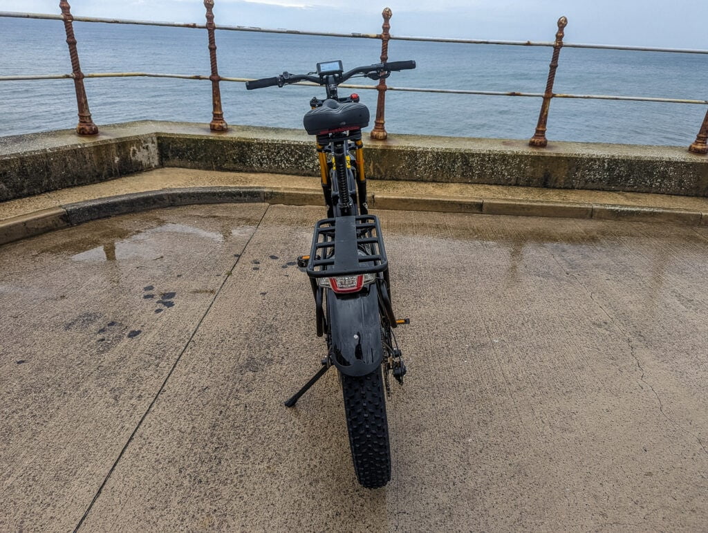 As you might expect, this bike feels like it handles hills better than normal 250W bikes. I took this up a very steep hill on the promenade, and there was only a small drop in speed when I approached the top, and there was very little peddling effort required from me.