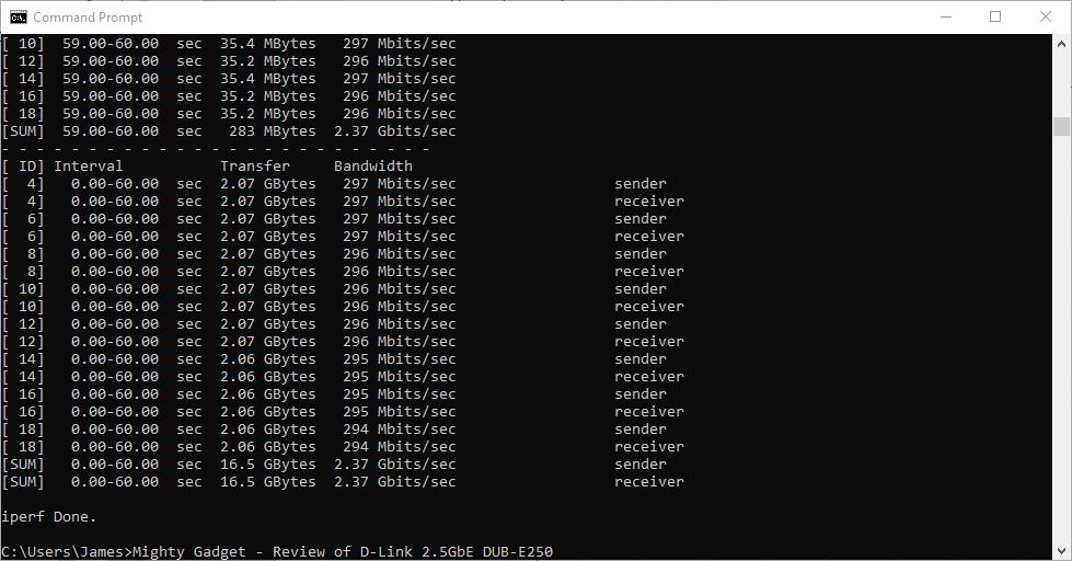 - D-Link DUB-E250 2.5GbE Adaptor – 2.37 Gbits/sec