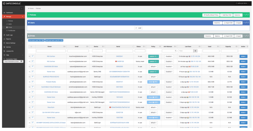 • Remote Management: SafeConsole allows for remote provisioning, deployment, thorough auditing, and much more.