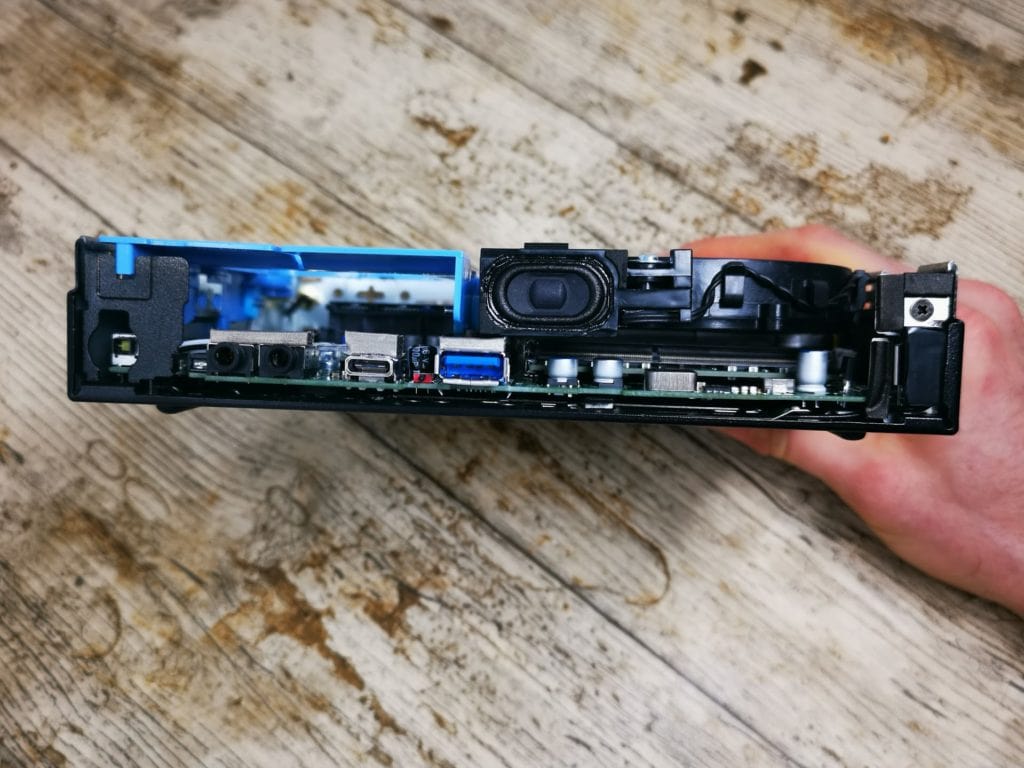You can gain easy access to the internals via a thumb screw and siding the top off. This then reveals a few upgrades that can be made, though obviously, these are limited. There is relatively easy access to the two M2 slots, one for storage and one for wireless. Plus an additional 2.5” bay.