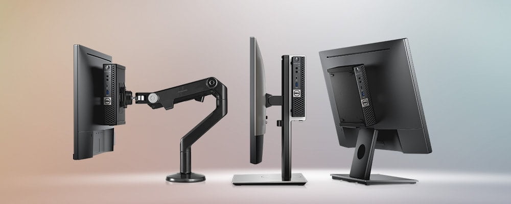 The OptiPlex includes options for VESA mount or the OptiPlex Micro All-in-One Stand allowing you to effectively turn any VESA compatible monitor into an all in one, reducing cable clutter across tables or floors.