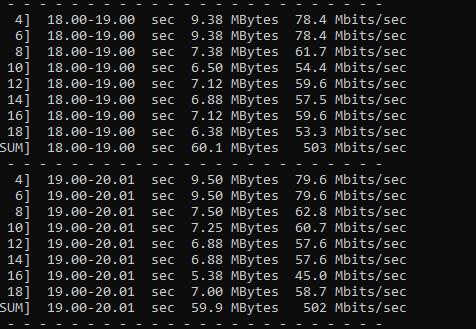 From the router in my office connecting to my desktop via the built-in WiFi of the MSI Unifi X570, the performance was OK. Once I disabled all the other WiFi access points in the house to reduce interference I was able to achieve around 500Mbps reliably using iperf connecting to my server.