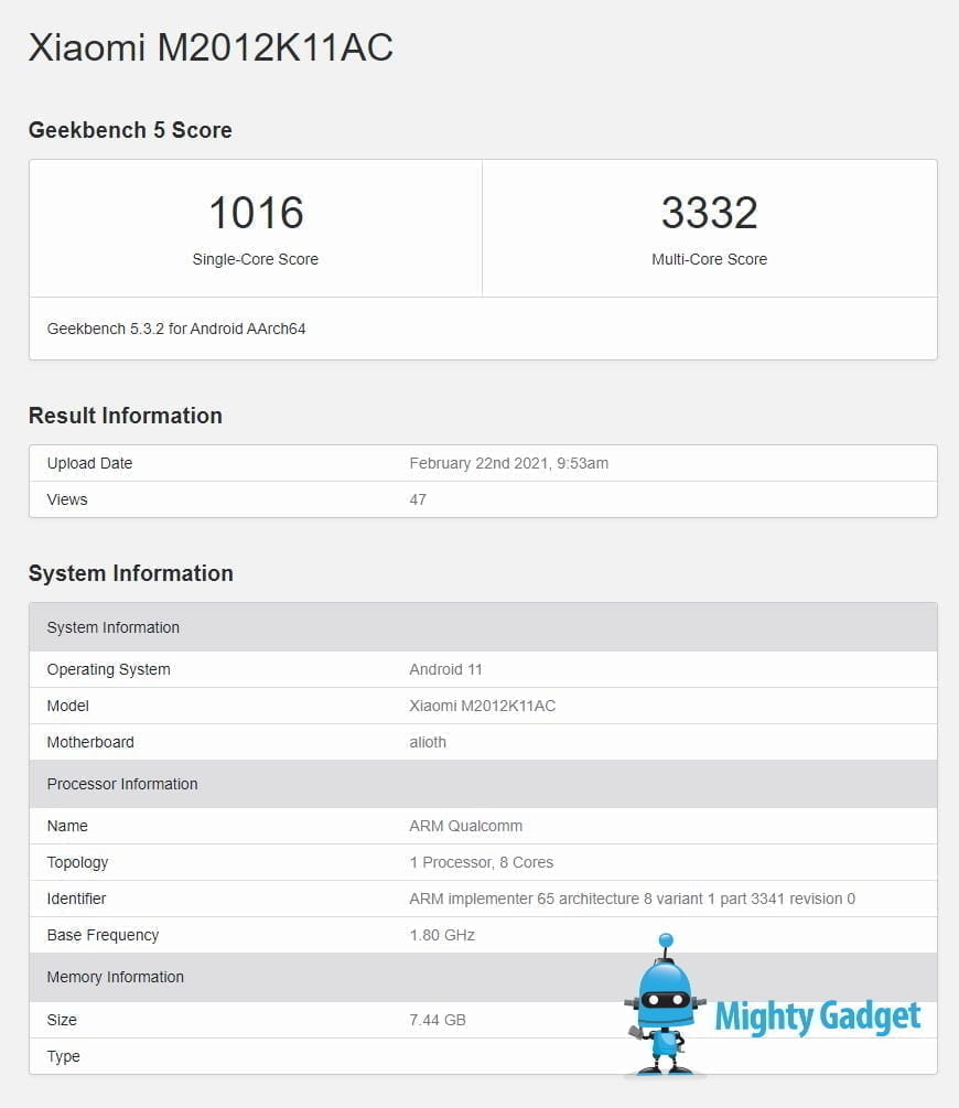 Xiaomi Redmi K40 (M2012K11AC) with Snapdragon 870