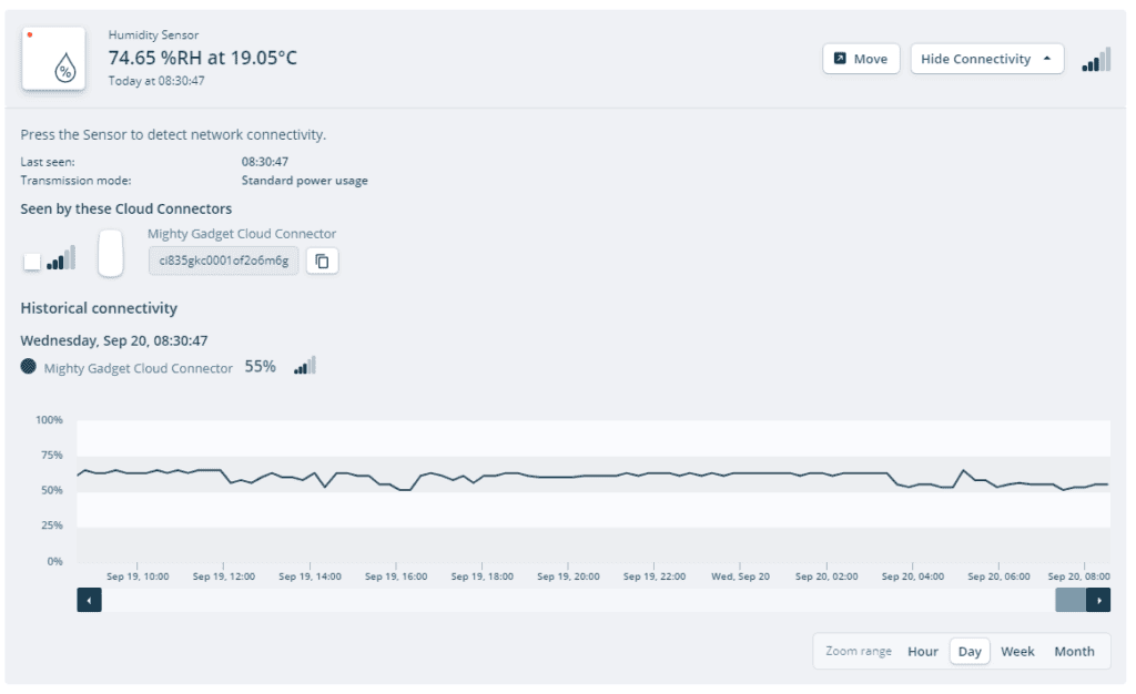 The company also has a range of accessories, and one of these is a range extender. This passive wireless external antenna increases the connection between a sensor and a Cloud Connector up to quadruple the range.
