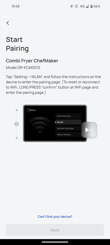 To make the most out of the ChefMaker, you will want to download the Dreo app and connect the air fryer to your WiFi network. This is a simple process as it uses Bluetooth to find and pass the SSID settings over to the air fryer.