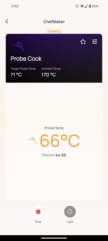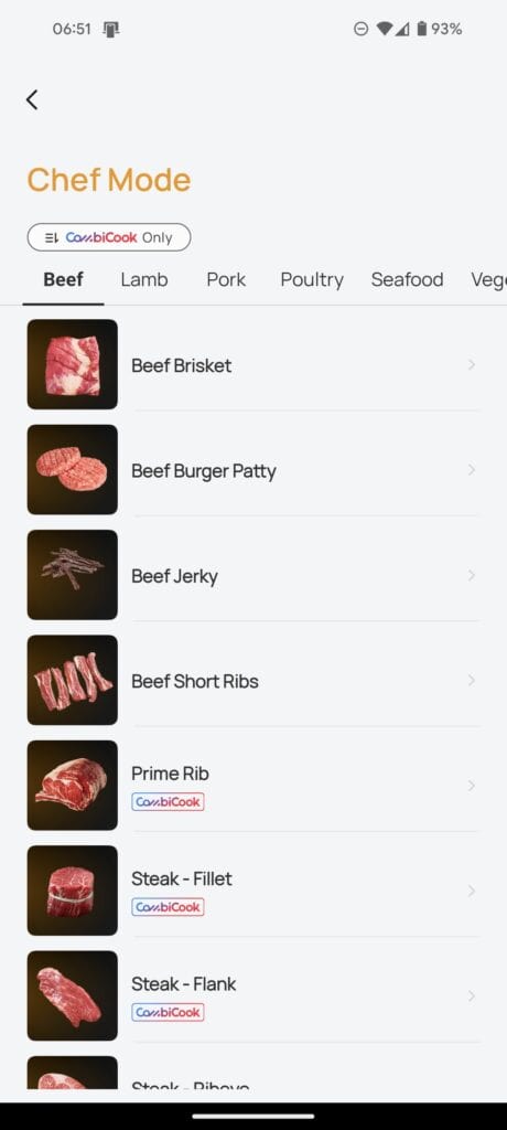 With the app, you can view all the various dishes that are available to make with the Chefmode, or you can manually program the probe mode.