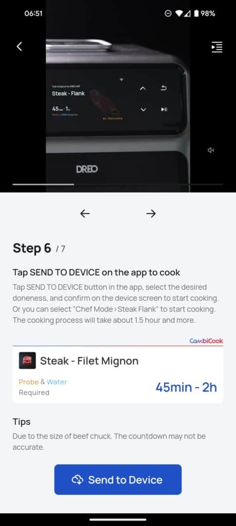 The one issue I have with this mode is that there appears to be no way to make your own cooking programs, and apart from selecting things like doneness, there is no way to customise the presets. You are, therefore, limited to what Dreo provide within their app.
