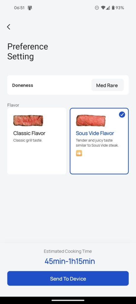 For Chef Mode, you select the dish and follow the basic tips. For some options, you have additional settings, which include using the air fryer in classic mode or sous vide and selecting the doneness.