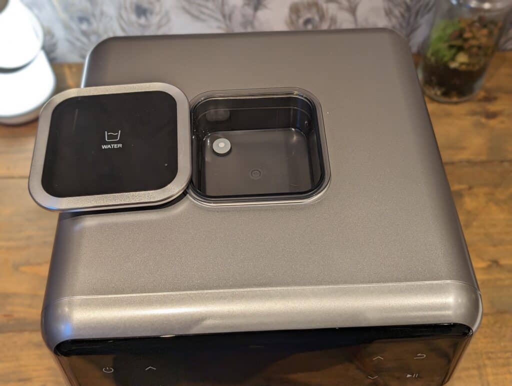 On the top of the ChefMaker is a small water tank, which will be used to steam-cook food and attempt to replicate sous vide.