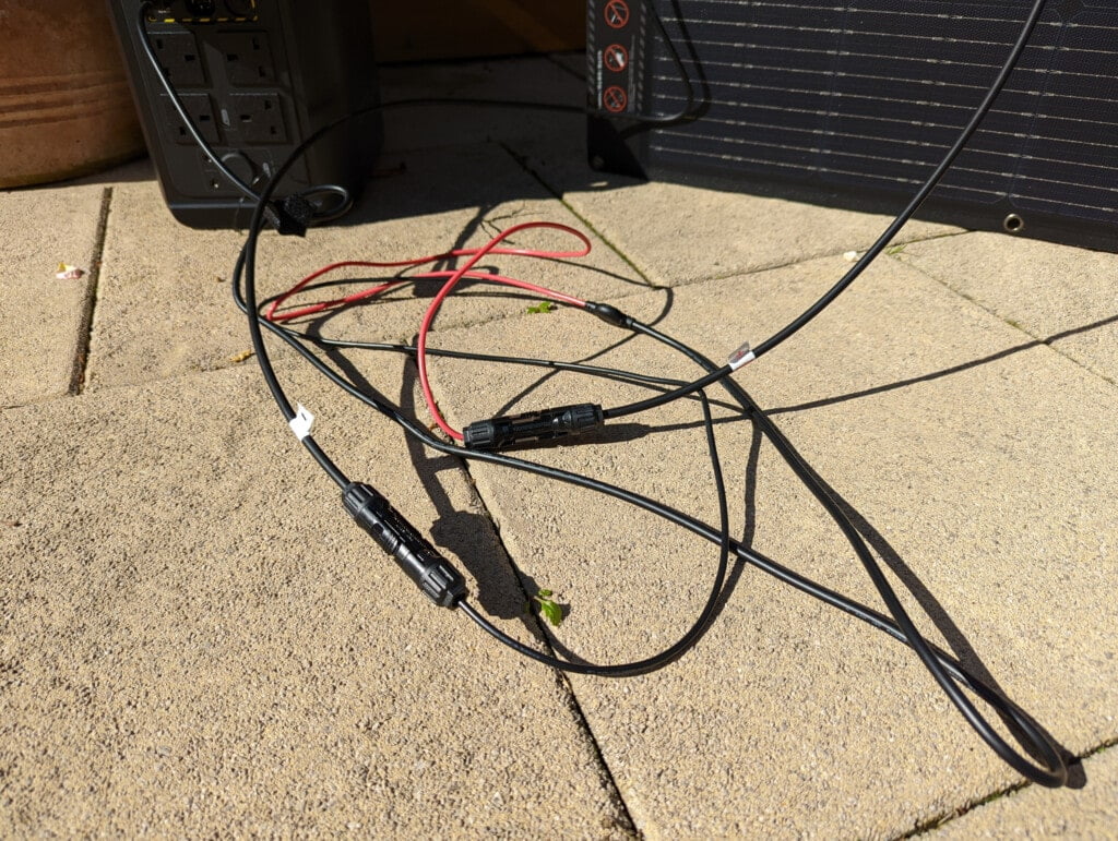 This requires you to connect the positive and negative ends to the corresponding connectors on the solar charging end (I stupidly didn’t connect both at first, thinking they were just different things). They are male/female plugs, so it should have been idiot-proof,