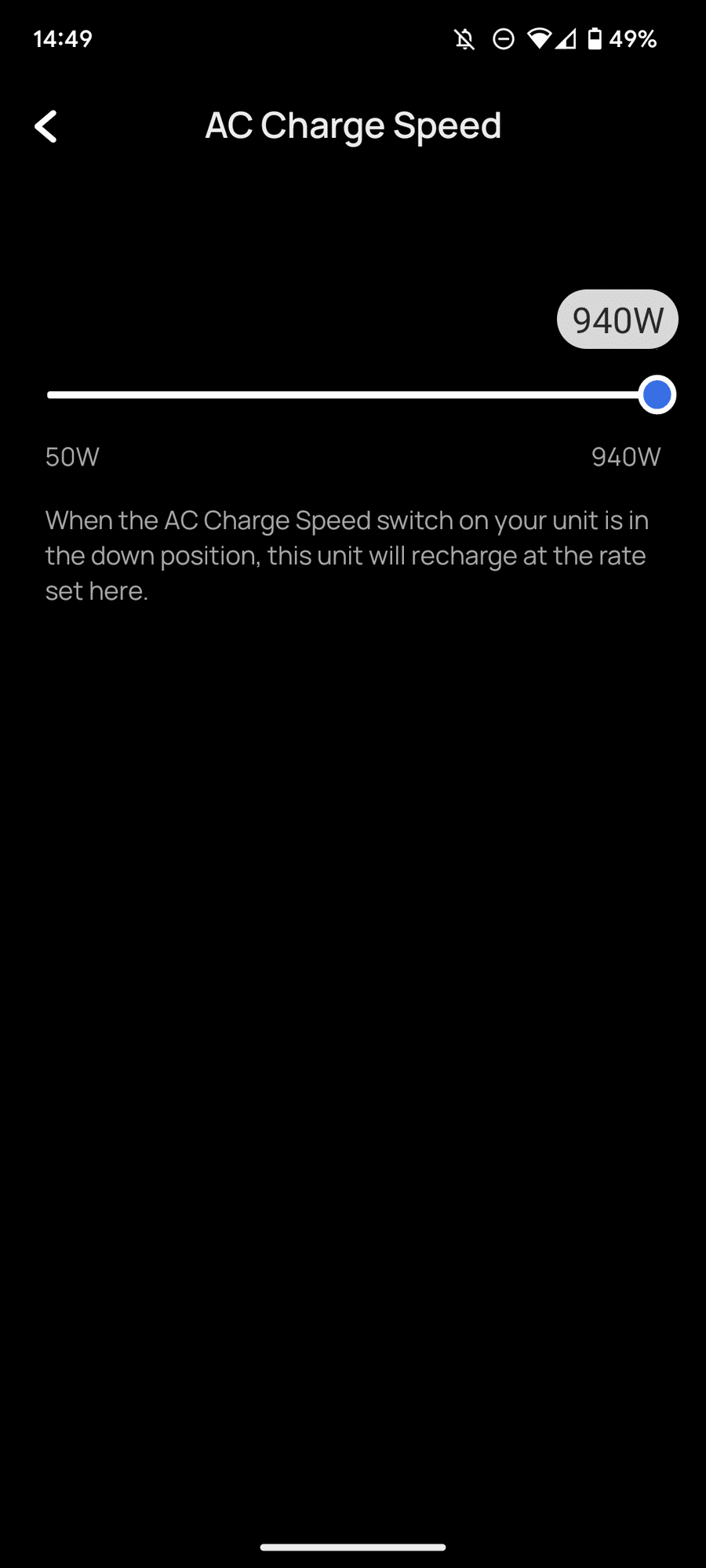 • You can adjust the charge speed. You’d normally leave it at the max rate, but a slower charge rate will mean the fans spin up less, and it is a bit better for the battery.