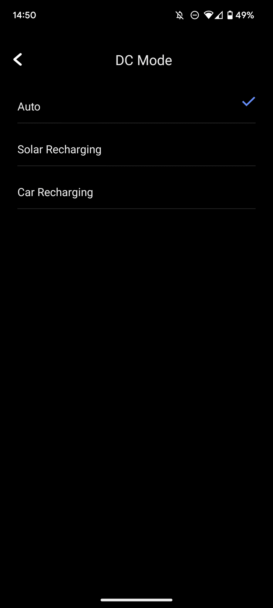 • You can switch DC mode from auto to car or solar only.