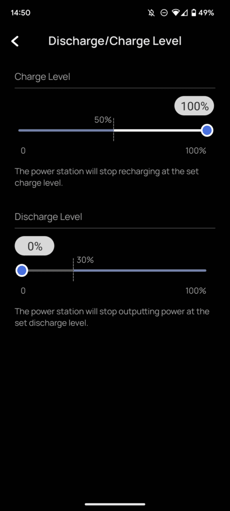• You can set the % you want the power station to stop charging, which can prolong the battery.