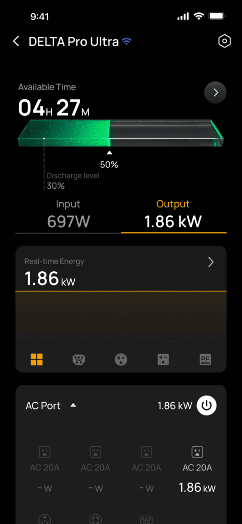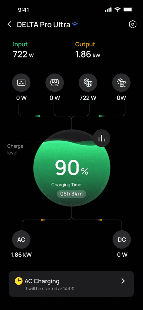 The DELTA Pro Ultra system is managed through EcoFlow’s comprehensive app. This provides users with real-time status monitoring, usage insights, and automation capabilities.