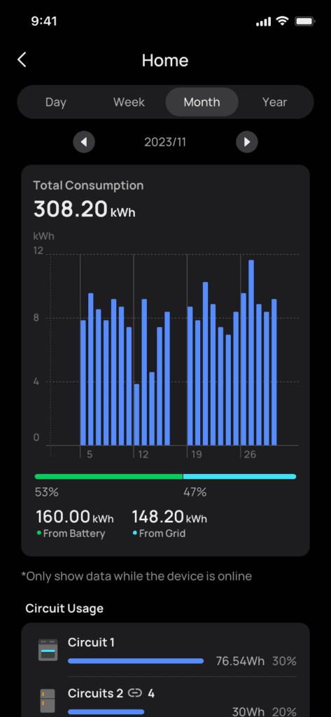 The Smart Home Panel also allows control and monitoring of individual circuits and appliances. Users can see real-time and historical usage data through the EcoFlow app. The system can also intelligently schedule EV, pool pump or HVAC operation to minimise energy costs.