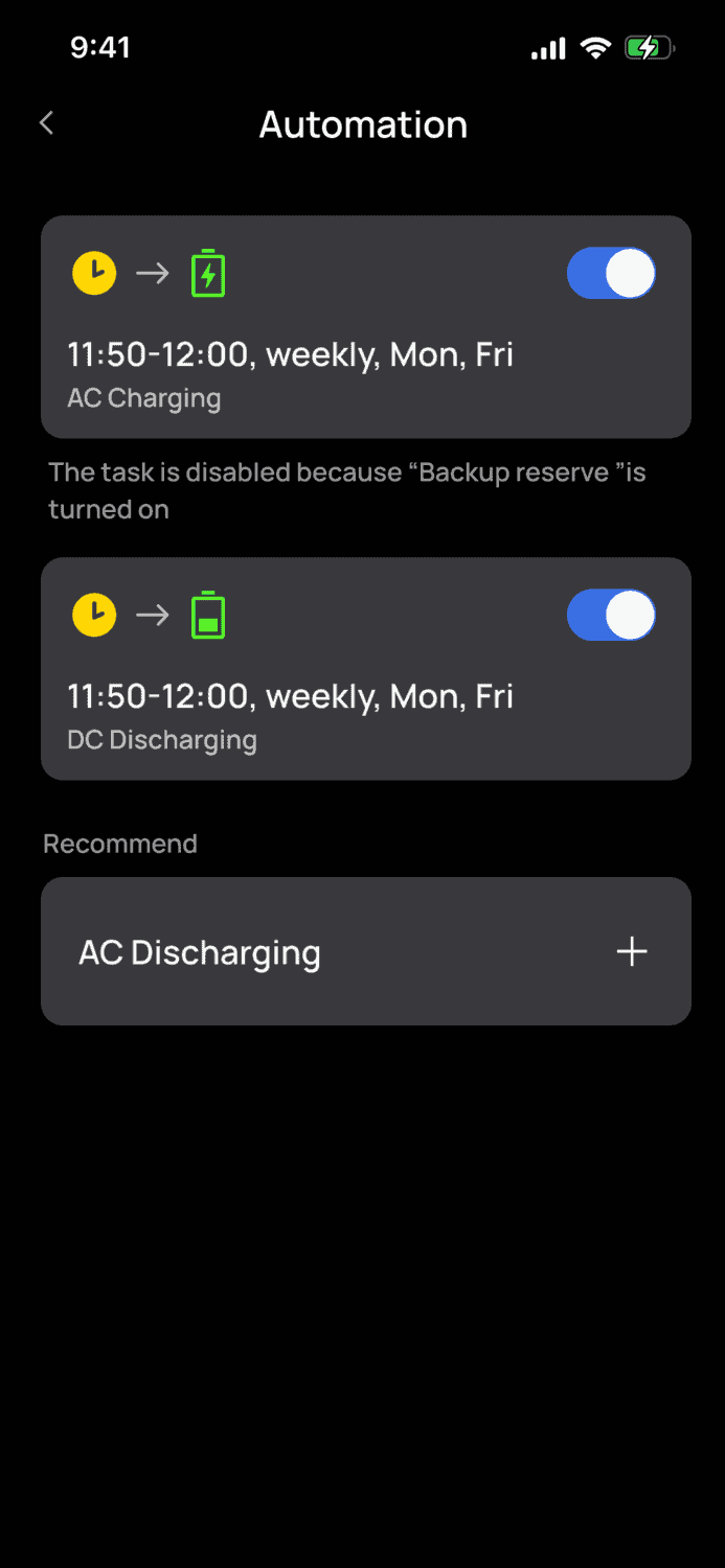- Automatically adjust battery/grid power mix based on time-of-use rates