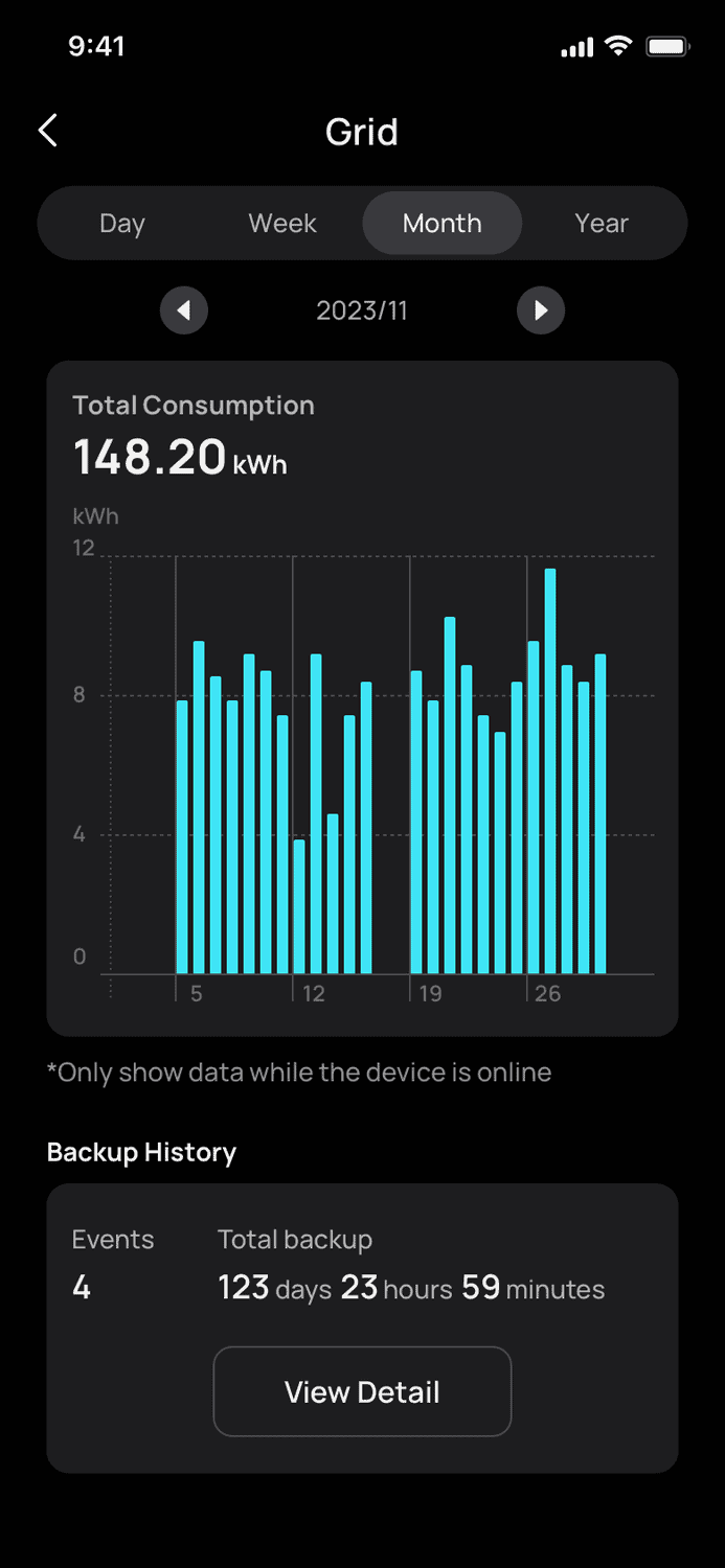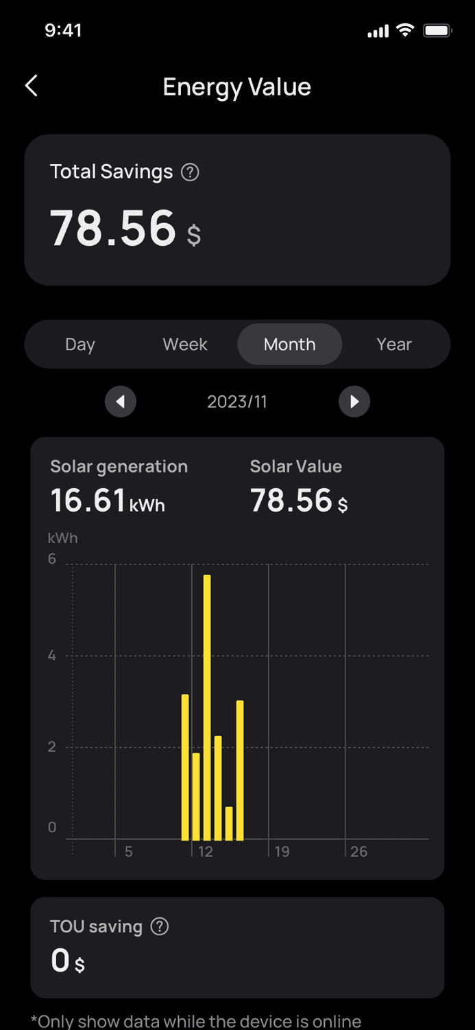 - Historical data on energy usage and self-consumption