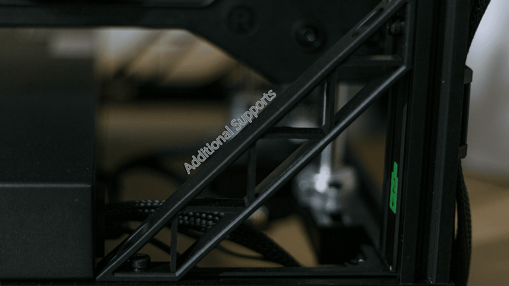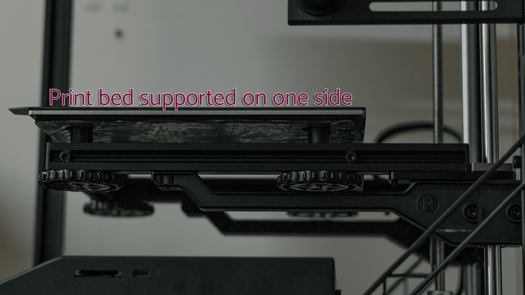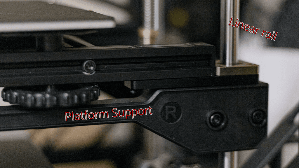 As the user constructs the printer, it is easy to see some of the additional supports added to help reinforce the structure against the forces created by the 2000mm/s2 acceleration. Additionally, there’s extra support to help the stability of the build platform, which is suspended from the back of the printer by a threaded rod and two linear rails. However, the platform is still only supported on one side, unlike the Ender-3 S1, which is supported by two linear rails at either end of the gantry.