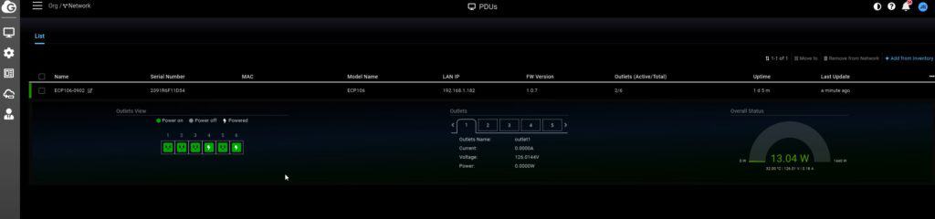 With the PDU dashboard, you can view detailed stats for each outlet in use, which shows the usage in amps and watts.