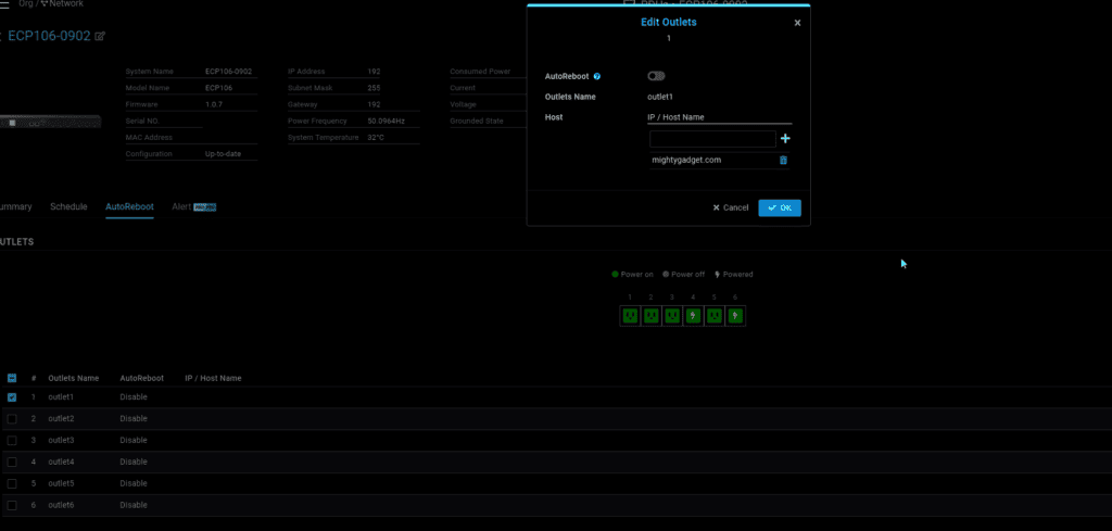 The AutoReboot feature is the most interesting and can be set up per outlet.