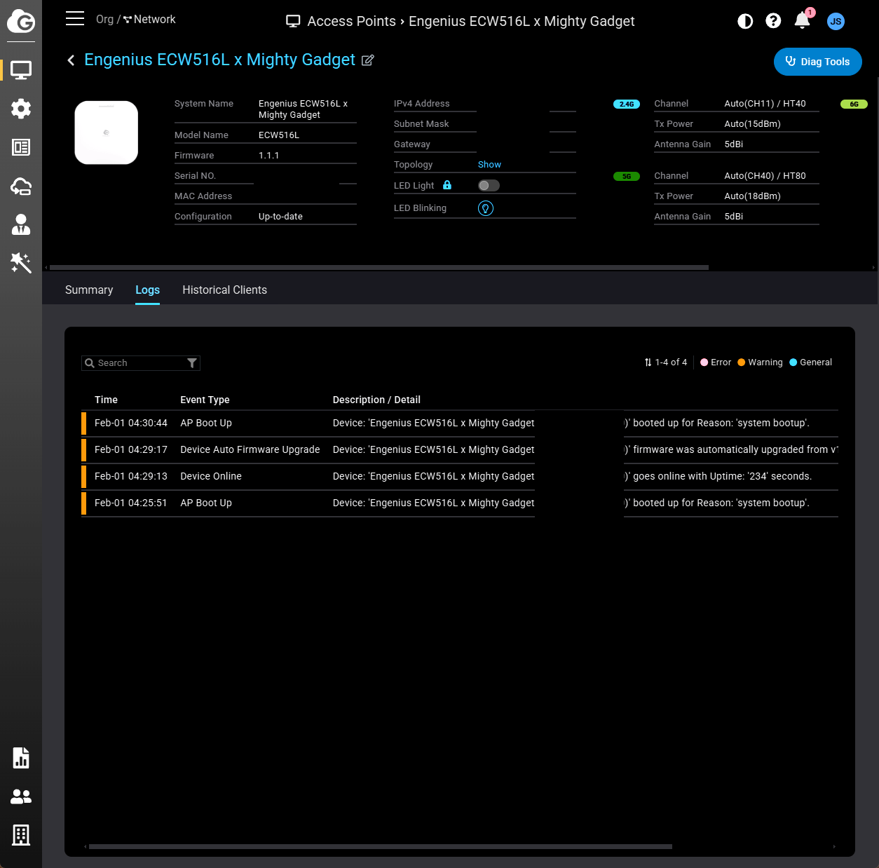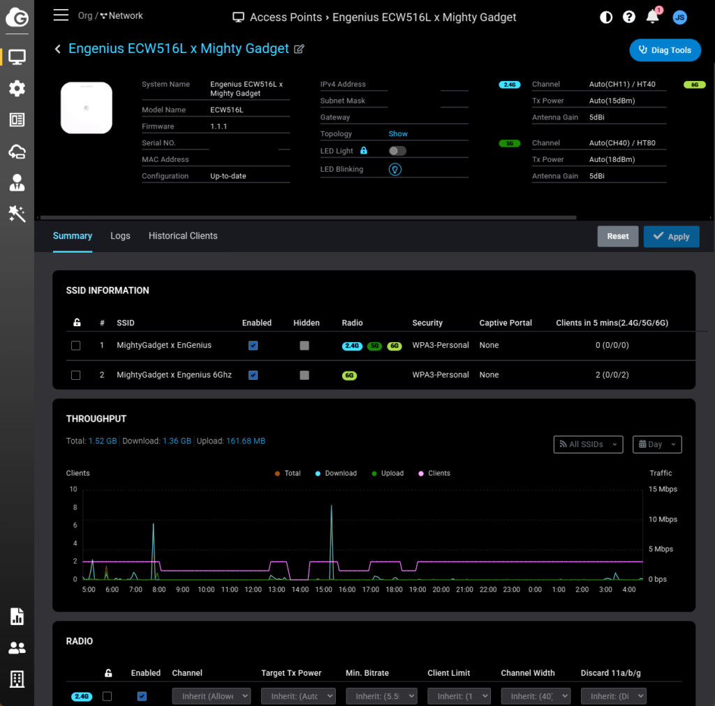 As this access point uses the normal EnGenius Cloud interface, the overall experience is identical to the other EnGenius access points.