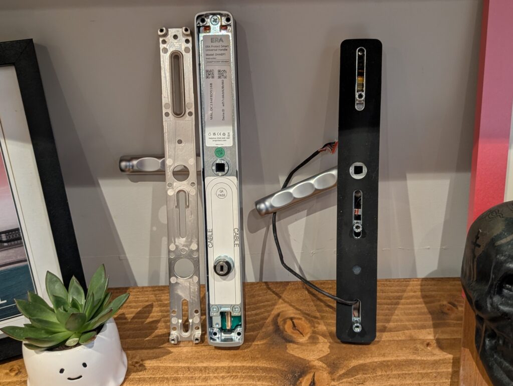 The ERA Protect Smart Universal Door Handle is different; it replaces all your hardware with handles for both the inside and out, as well as its own cylinder. This design is more like the Yale Conexis L1, which I reviewed 6 years ago. It was a good lock but I had a few set-up niggles, the app wasn’t great and I wasn’t confident enough with it to commit to using it permanently.