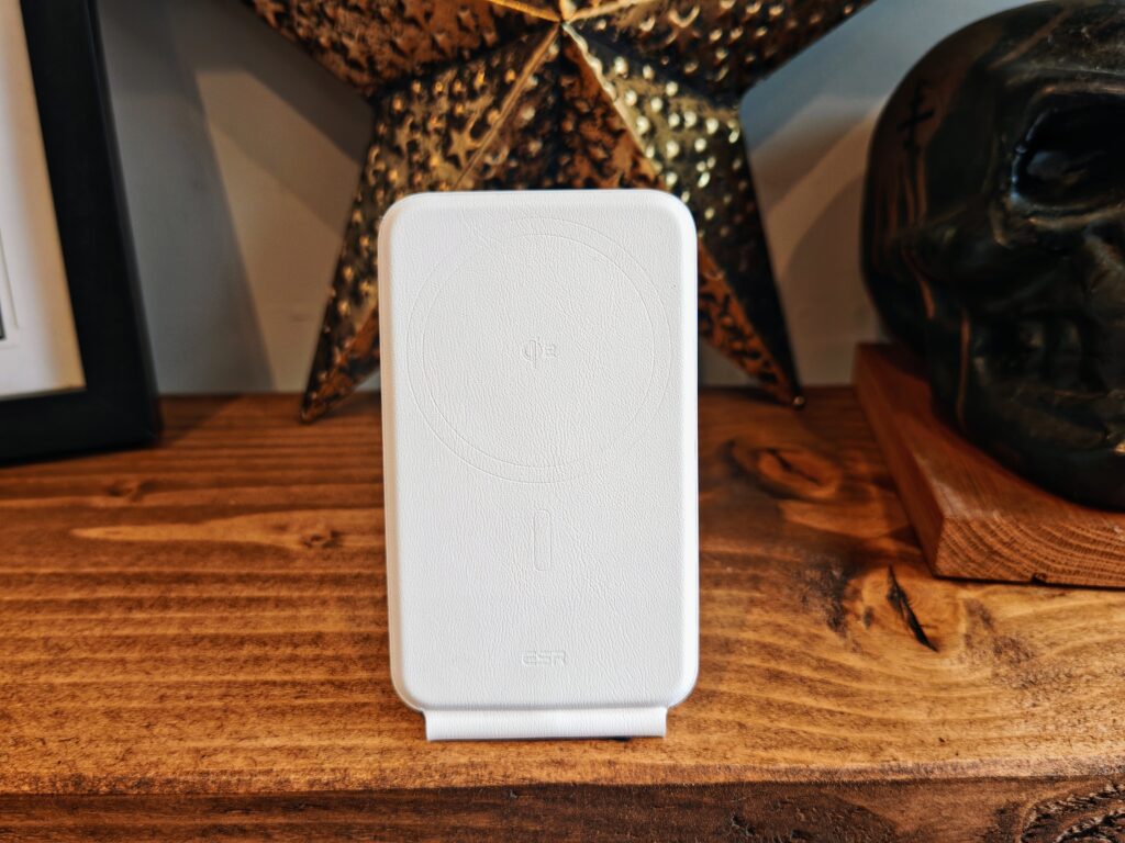 The ESR Qi2 3-in-1 Travel Wireless Charging Set features a sleek and modern design that prioritises portability. The main charging stand is constructed from durable plastic with a matte finish, which helps resist fingerprints and scratches. When folded, the stand measures just 80 x 66 x 32mm, making it easy to slip into a pocket or bag.