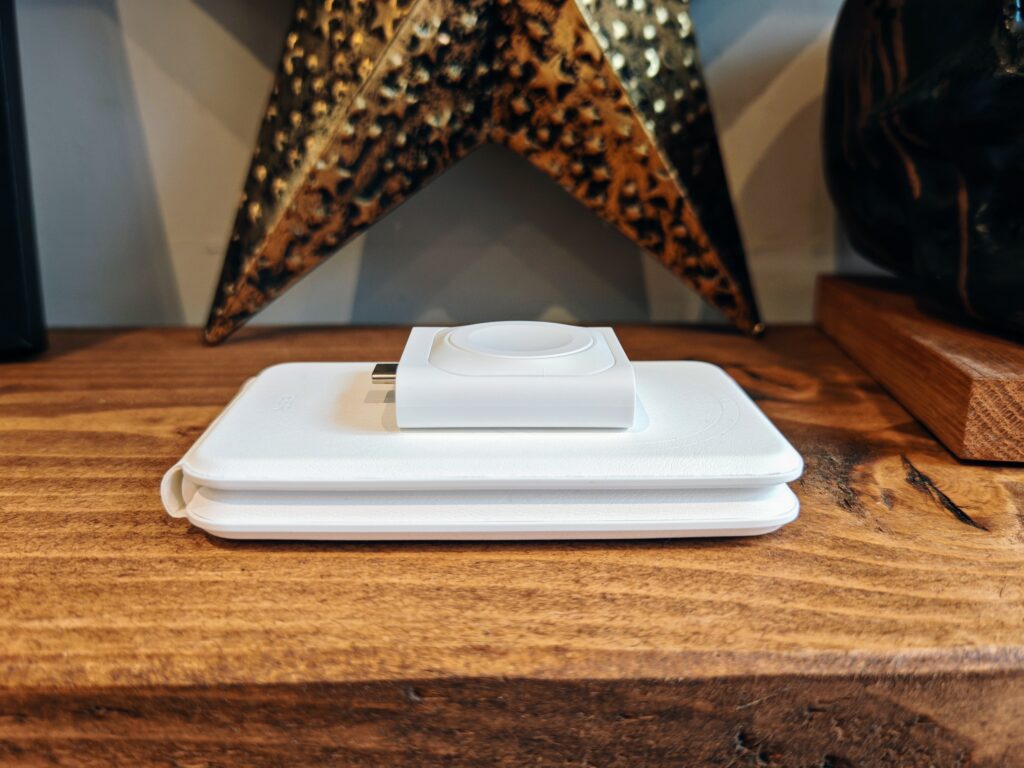 For Apple Watch charging, the magnetic pad is compatible with all Apple Watch models, from Series 1 to the latest versions. However, it’s worth noting that only Series 7 and later will benefit from the fast charging capability.