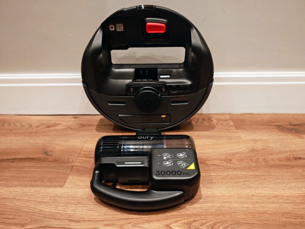 This can then also be used as a hand-held upholstery vacuum by removing the extension pole. Most stick vacuums do this, but it is an important feature for a 3-in-1 like this as it allows you to do much more compared to the robot vacuum by itself.