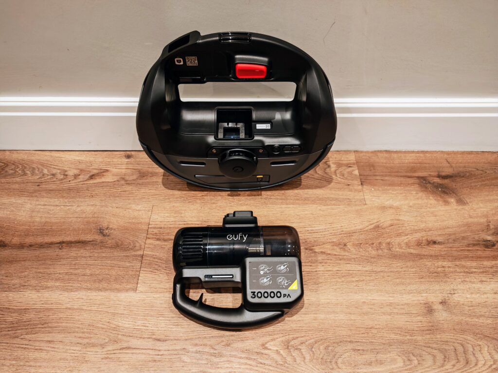 While Eufy advertises the E20 as the world’s first 3-in-1 detachable combo robot vacuum, that is true.