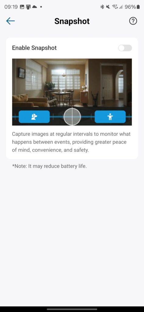 Snapshots: This takes images at regular intervals to monitor what happens throughout the day. I’d say this would be more useful for indoor cameras but it is a nice feature to have.