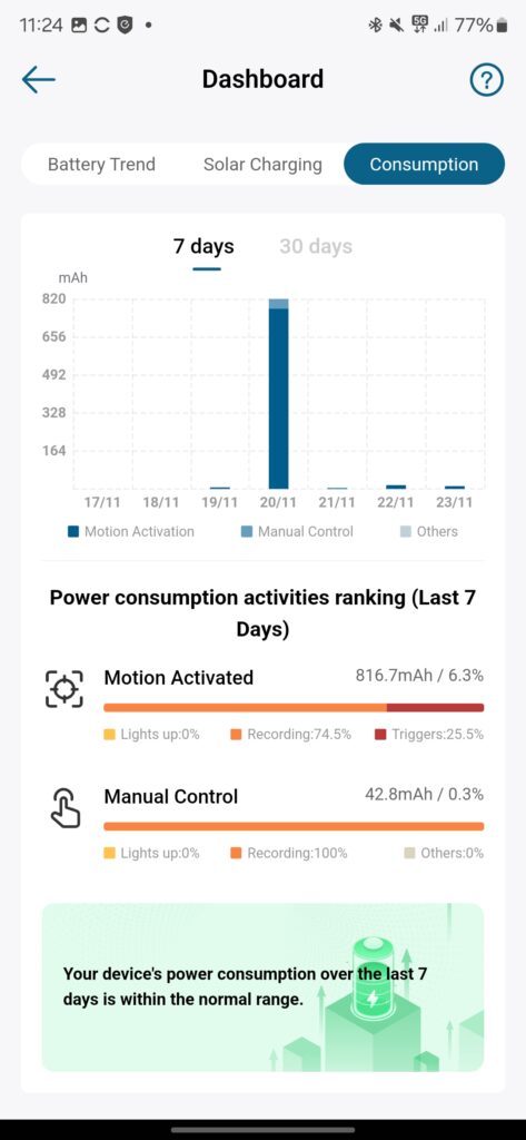 During my testing, it is November in the north of the UK. There is barely any sun, and the position in which my cameras are mounted is not the best for sunlight exposure.