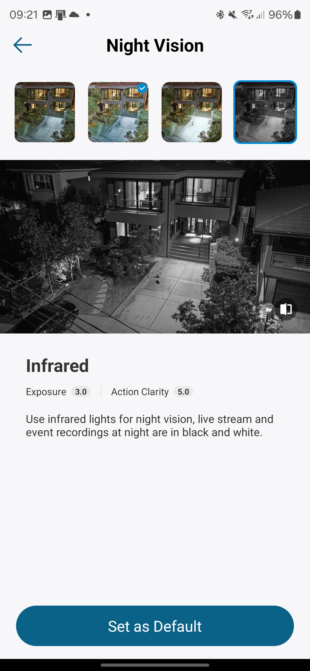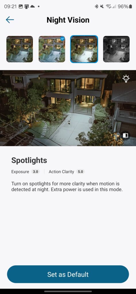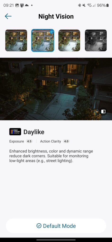 Night Vision Settings: The 3C has options for B&W night vision, or colour night vision which made possible by the spotlight.